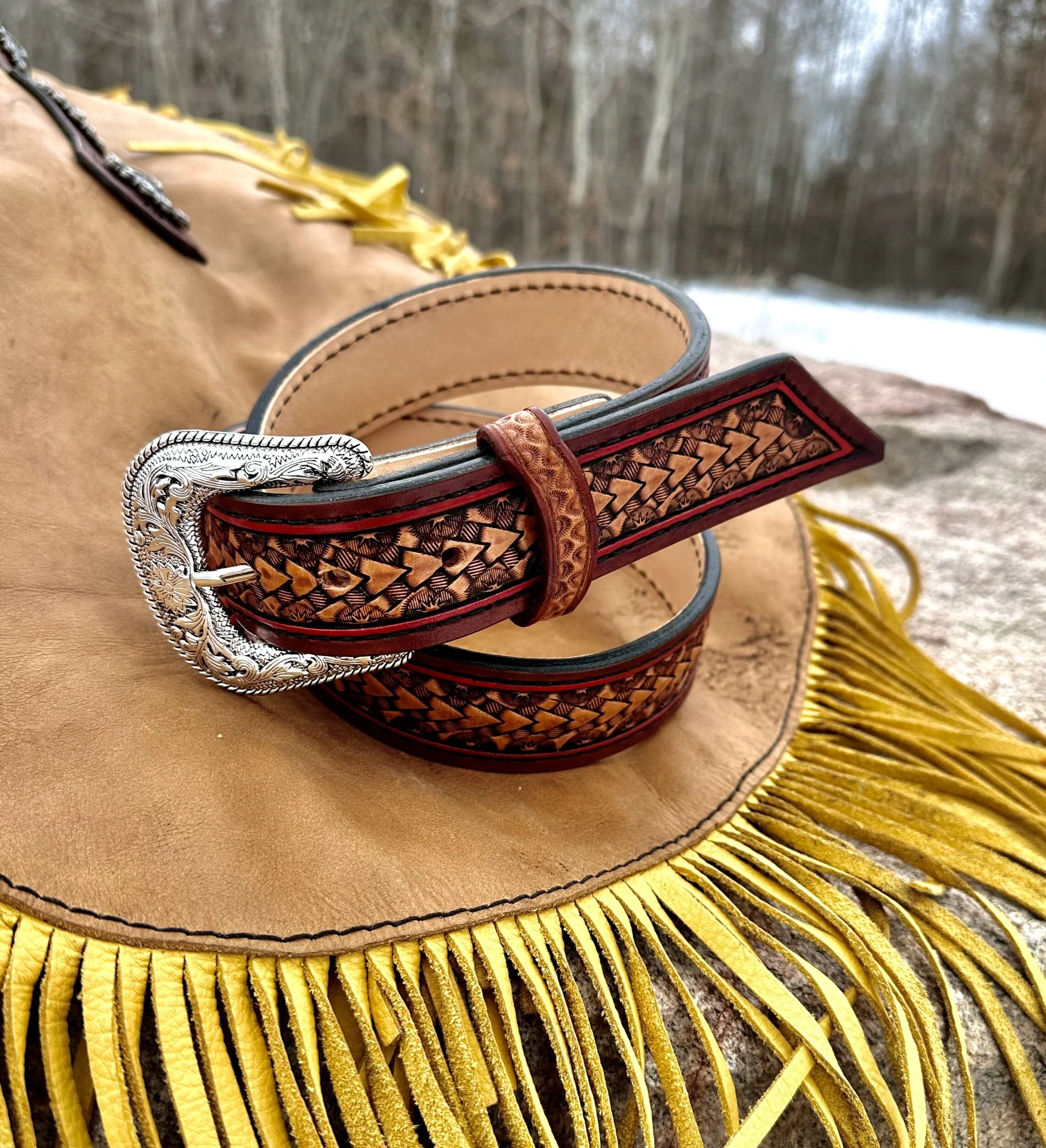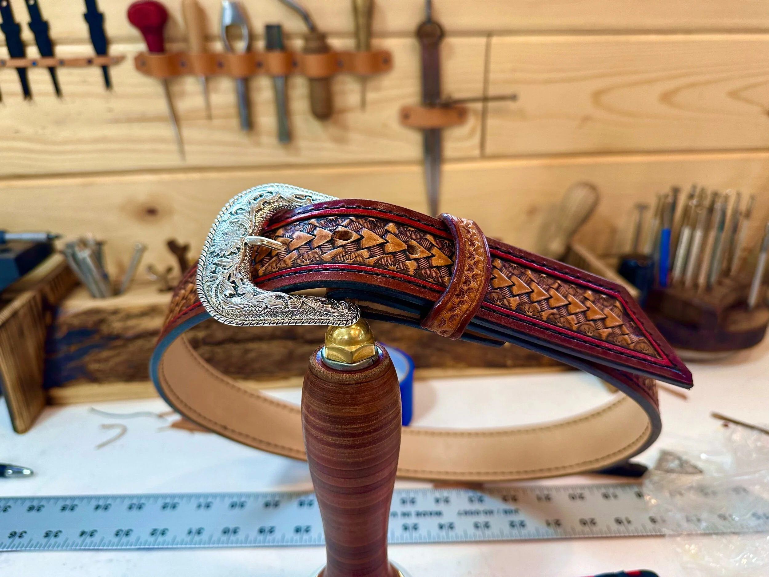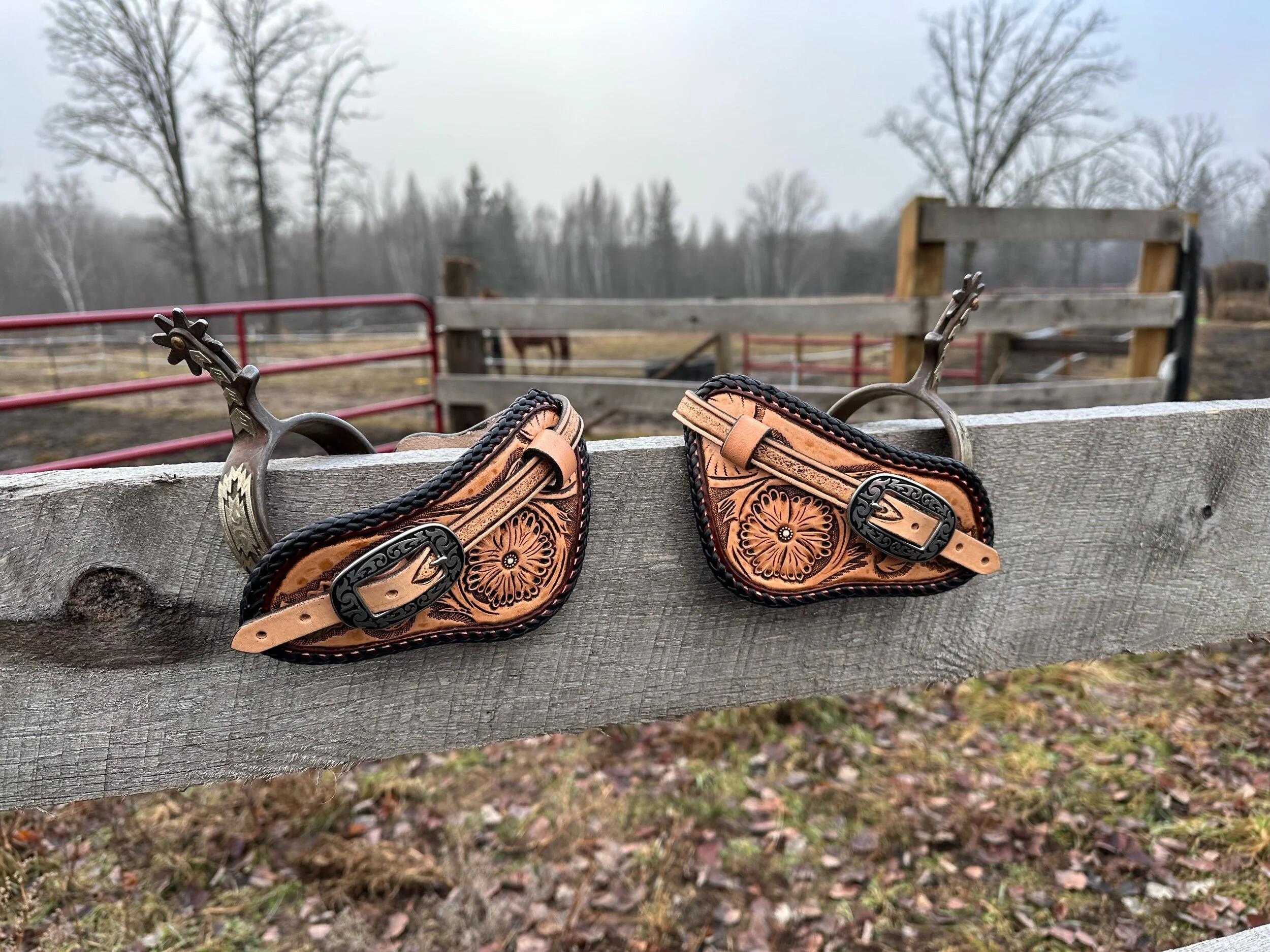 Make sure to let me know if you’re interested in ordering a custom product. Hand stamped belt $90.00 Spur straps $150.00